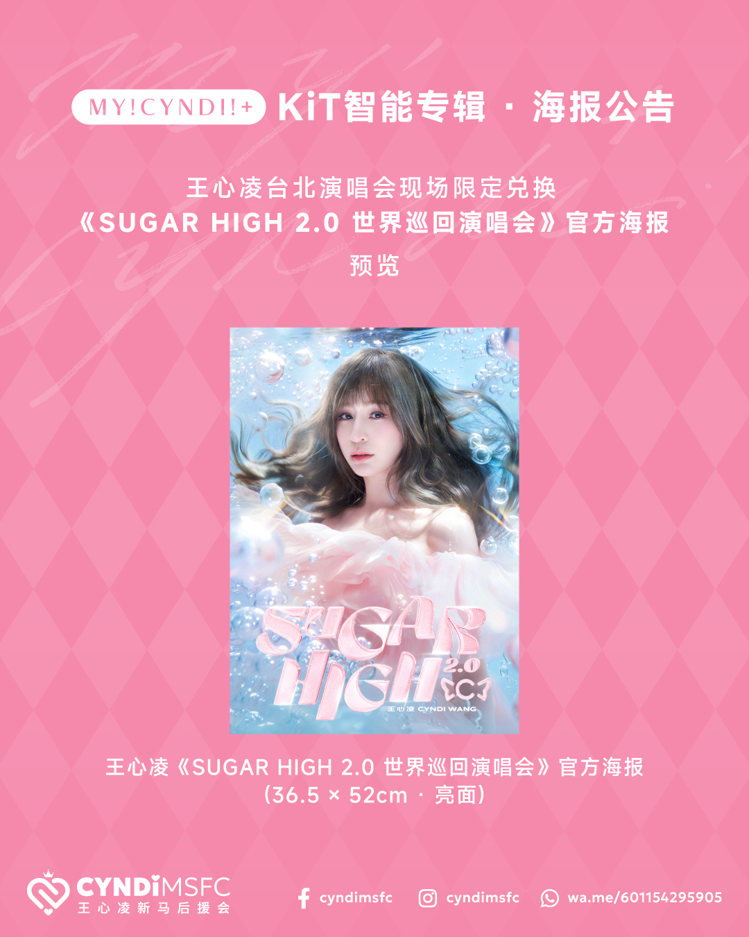 王心凌《SUGAR HIGH 2.0 世界巡回演唱会》官方海报 · 海报筒邮费补款